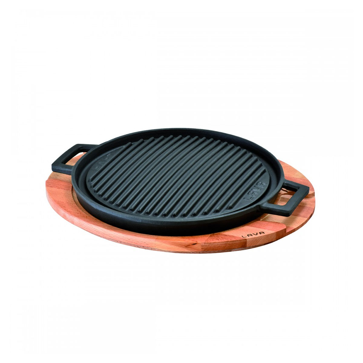 Круглая прямоугольная плита/сковорода гриль с двумя ручками и деревянным п. Бренд: Lava Материал: Enamelled Cast Iron 1 coat 1fire, thickness: Bottom=5mm. Edges=3,5mm. Beechwood / Natural Color, thickness=2,5cm. Наружный размер: W=32,8 cm L=38,8 cm H=4,8 cmВнутренний размер:  развернуть описание ▼