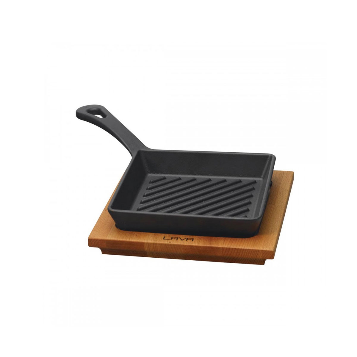 Сковорода для мини гриля, квадратная на деревянном подносе 16x16cm.