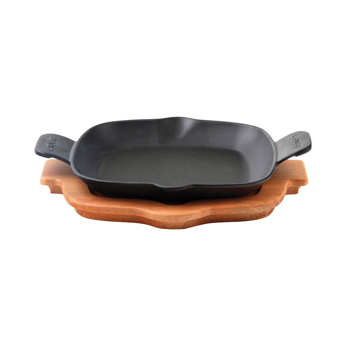 Сковорода квадратная с двумя диаметрально расположенными ручками на дерев