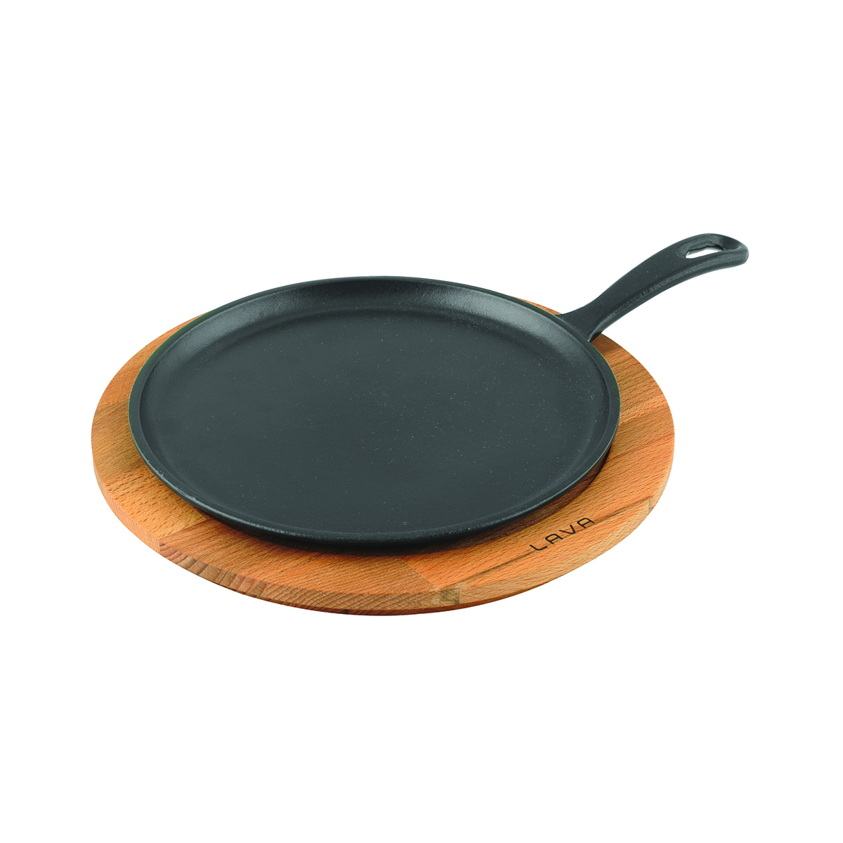 Сковорода для пиццы/блинов с литой ручкой и деревянным подносом ()20cm.