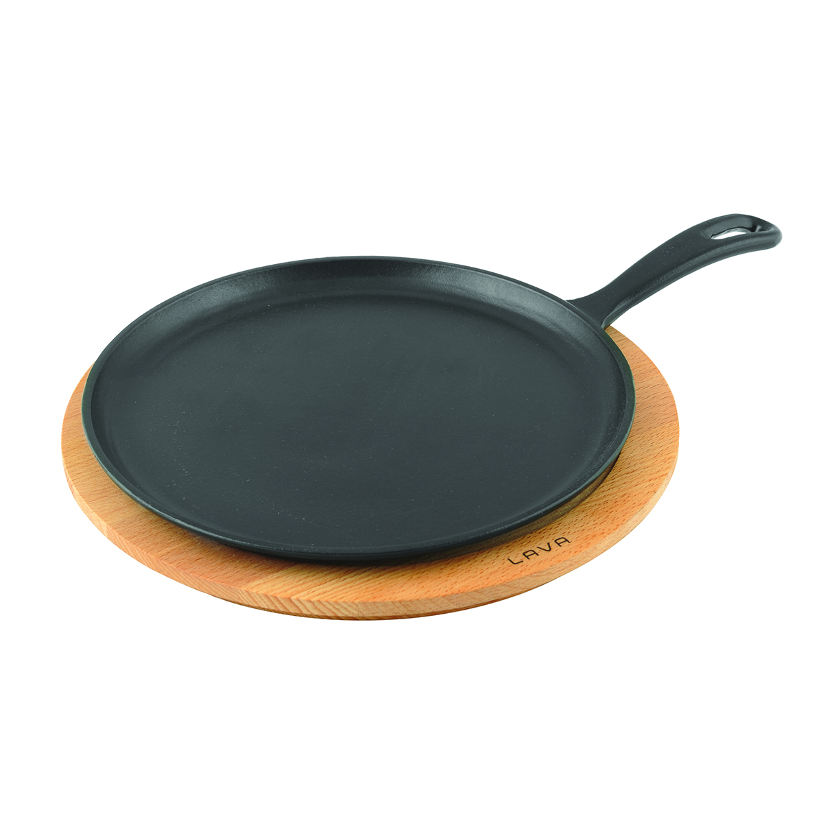 Сковорода для пиццы/блинов с литой ручкой и деревянным подносом ()26cm.