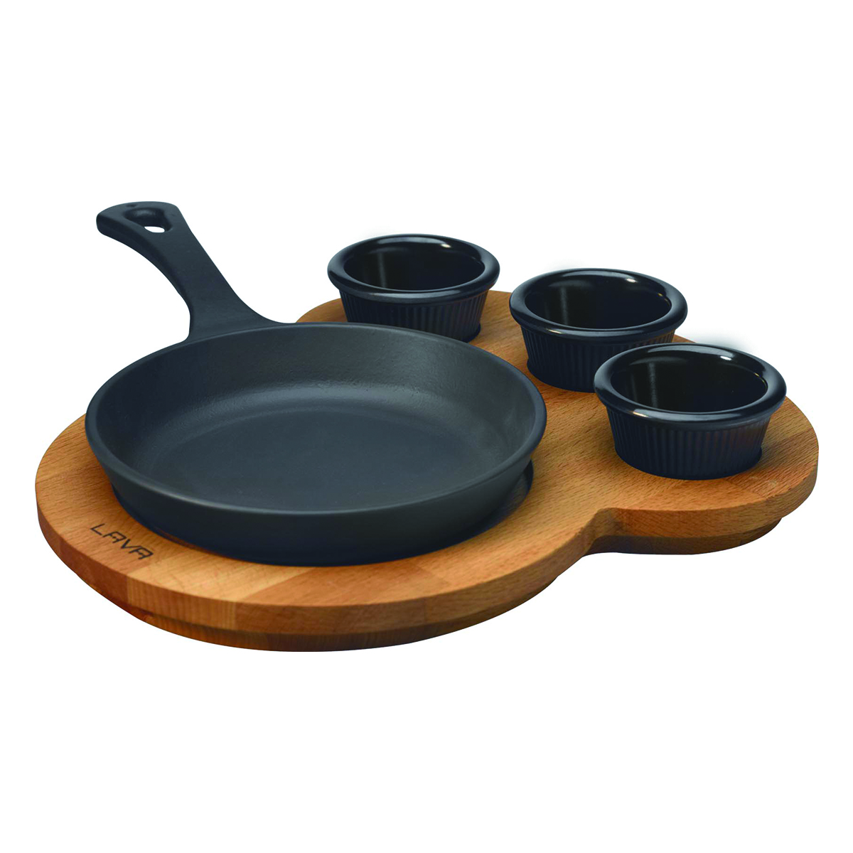 Сковорода круглая с деревянным подносом()16cm. (не включает соусники)