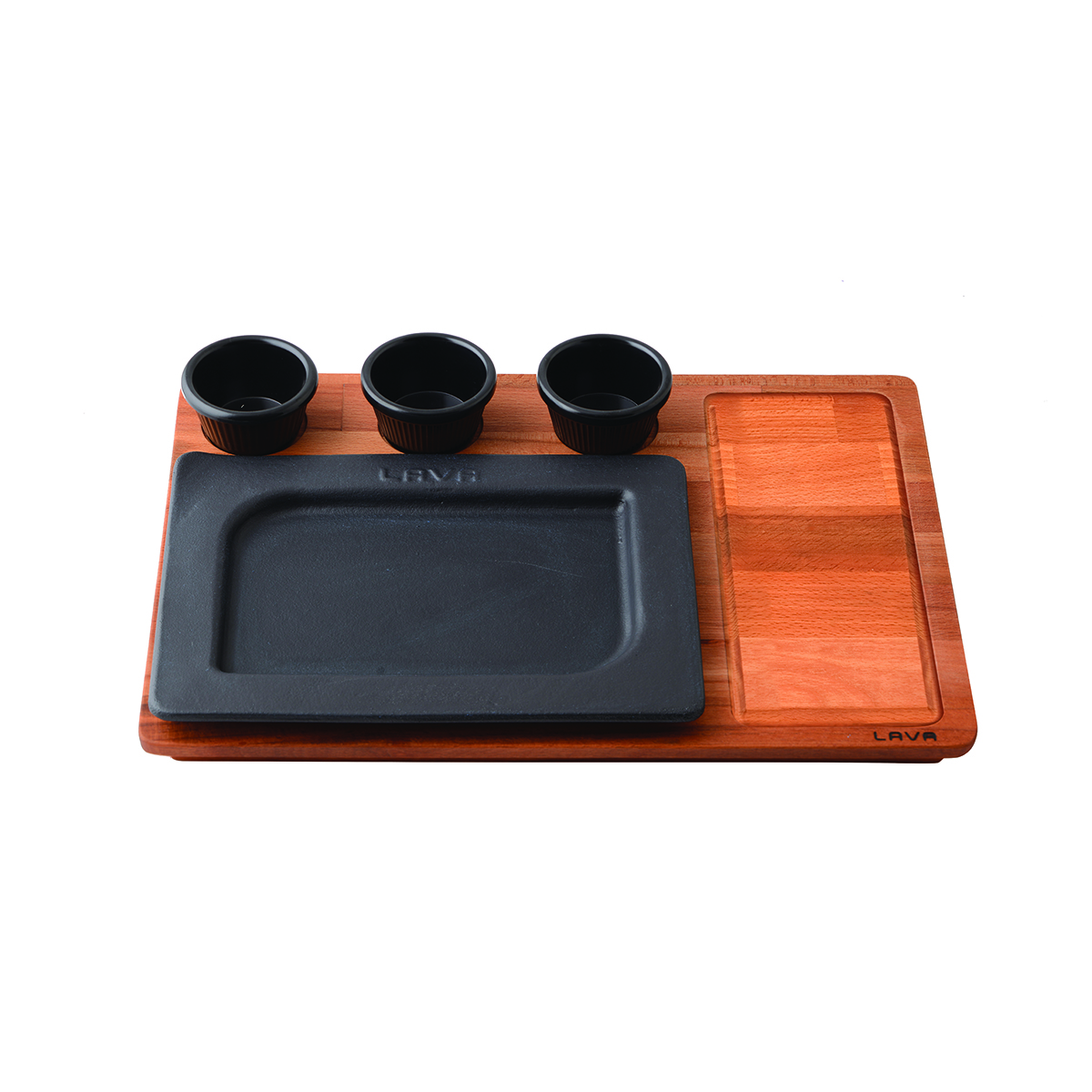 Сервировочное блюдо, прямоугольное, черное на деревянном подносе 19x26cm.