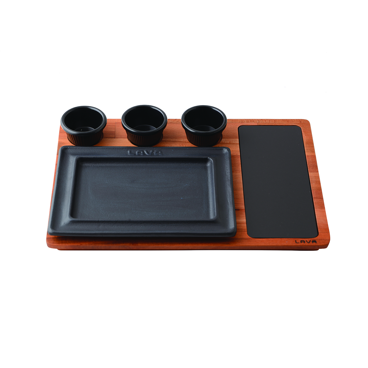 Сервировочное блюдо, прямоугольное на деревянном подносе и съемная литая ч
