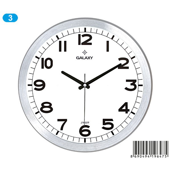 Настенные часы galaxy m-1964-3. Настенные часы GALAXY M-1964-3 Настенные часы GALAXY M-1964-3 серебреного цвета, имеют надежный бесшумный кварцевый механизм, работающий от батарейки типа АА (пальчиковые). Эта модель идеально подойдет для дома в гостиную комнату разных стилей, включая восточный и под старину. Временные рамки обозначены арабскими цифрами. Характеристики часов GALAXY M-1964-3 Производство: Турция Гарантия: 1 год Механизм: кварцевый Материал: алюминий, минеральное стекло Цвет: серебро Размер: 30 см Стрелки под стеклом Тип батарейки - АА (пальчиковые). В комплект не входят. Настенные часы марки GALAXY производятся с 1985 года в Турции. Завод является крупнейшим в Европе по производству интерьерных часов. В ассортименте современные и классические часы, а также часы в турецком стиле. Все модели хорошего качества по демократичной цене. Наш интернет-магазин предлагает купить настенные часы GALAXY M-1964-3 с доставкой по России с оплатой курьеру при получении (наложенный платеж), а также в Беларусь и Казахстан по предоплате. Мы являемся официальным представителем часовой фабрики GALAXY в России. Размер, см : 30 Цвет : серебро Материал : алюминий, минеральное стекло Механизм : Кварцевый Функции : Бесшумные СКИДКИ : Индивидуальные