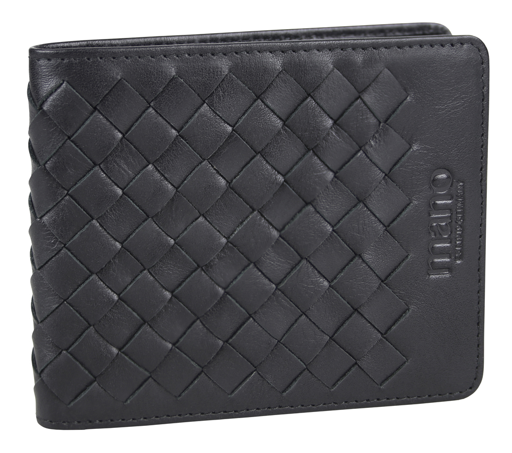 Портмоне Mano Don Luca, натуральная кожа в черном цвете, 11 х 9 см