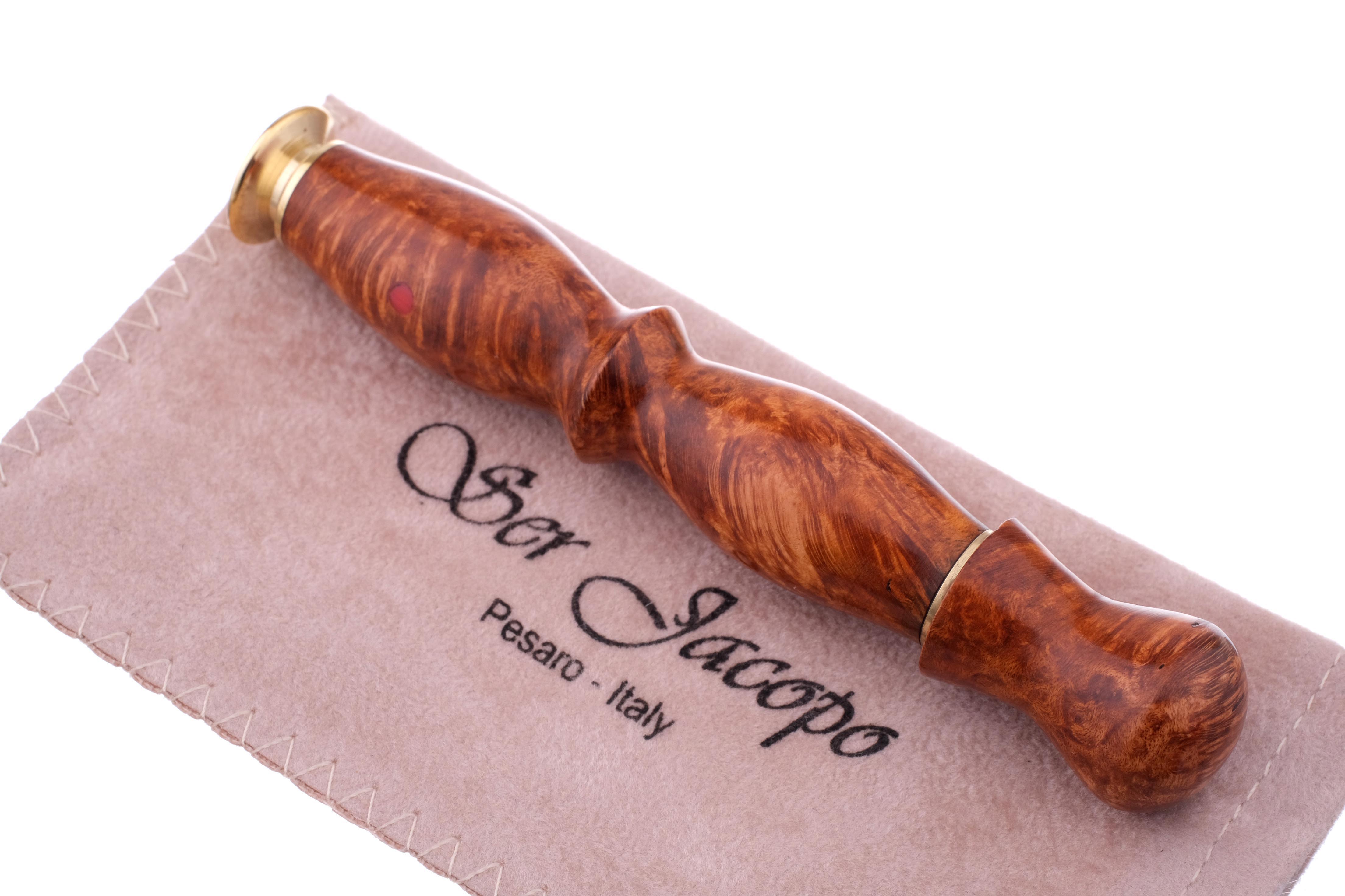 Тампер трубочный ser jacopo, амбуина. Инструмент для ухода за трубкой в подарочном исполнении из бразильского дерева Амбуина и латуни. Штучная работа итальянских трубочников из мастерской Ser Jacopo (www.serjacopo.it). Модель M5 c тампером для трамбовки и лопаткой для чистки или перемешивания табака. Поставляется в фирменном кисете. Материал Дерево Амбуина, металл Производитель Ser Jacopo, Италия Размер 10х1,5