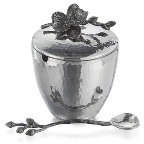 Ёмкость для мёда с ложкой Michael Aram чёрная орхидея 11см (серебрист.)