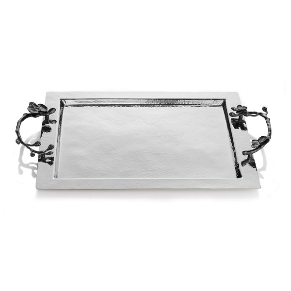 Поднос прямоугольный с ручками Michael Aram чёрная орхидея 46x31см (серебр