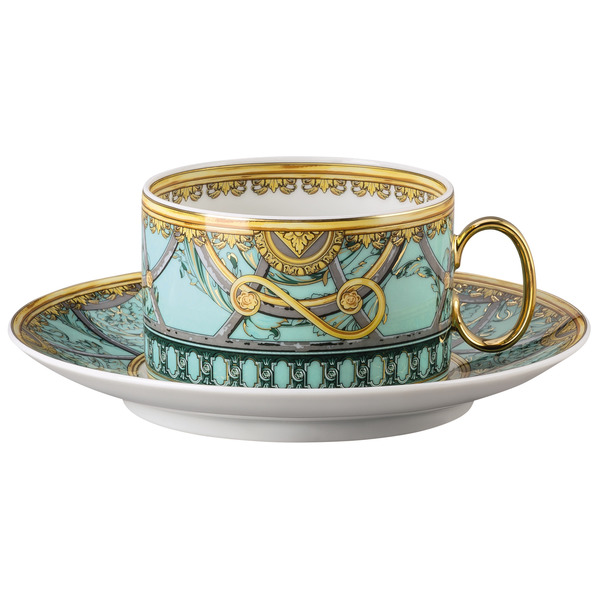 Чашка чайная с блюдцем 200мл дворцовая лестница (зеленая)
