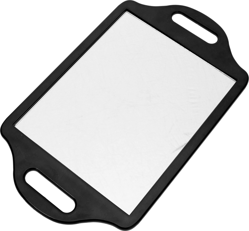 Зеркало заднего вида черное с двумя ручками (36 х 22 см) dewal mr-016. Зеркало заднего вида DEWAL Professional. Лёгкое и удобное парикмахерское зеркало с двумя ручками, для демонстрации клиенту стрижки, или прически на затылочной части головы. - Изготовлено из пластика и стекла - Без увеличения изображения Зеркало упаковано в индивидуальную фирменную коробку. Размеры 33,5 х 23 см Материал Пластик Назначение Зеркало заднего вида