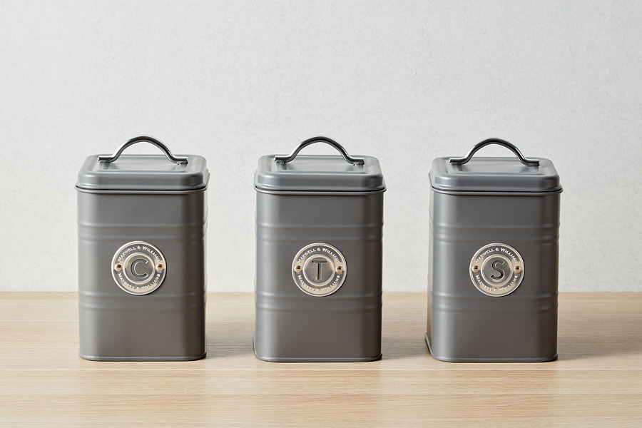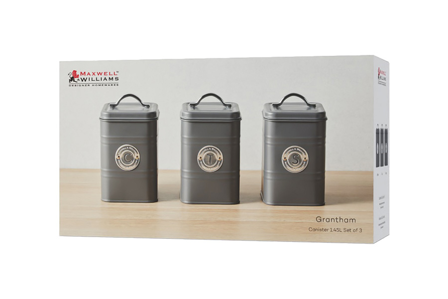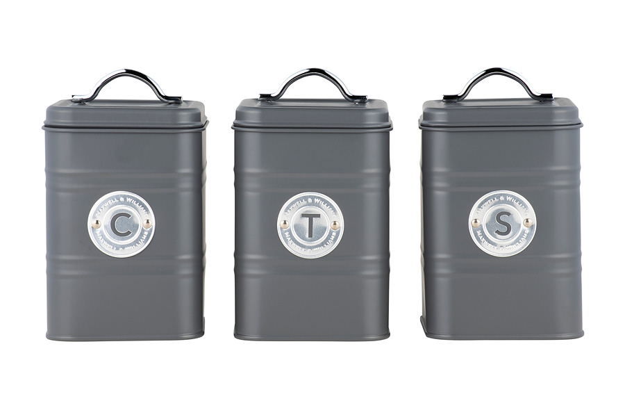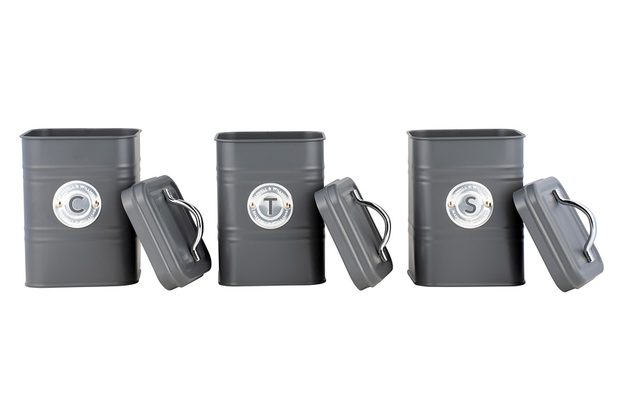 Набор банок для сыпучих продуктов Grandham, тёмно-серые, 1,45 л, 3 шт