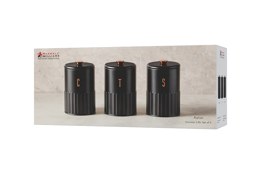 Набор банок для сыпучих продуктов Astor, чёрные, 1,45 л, 3 шт