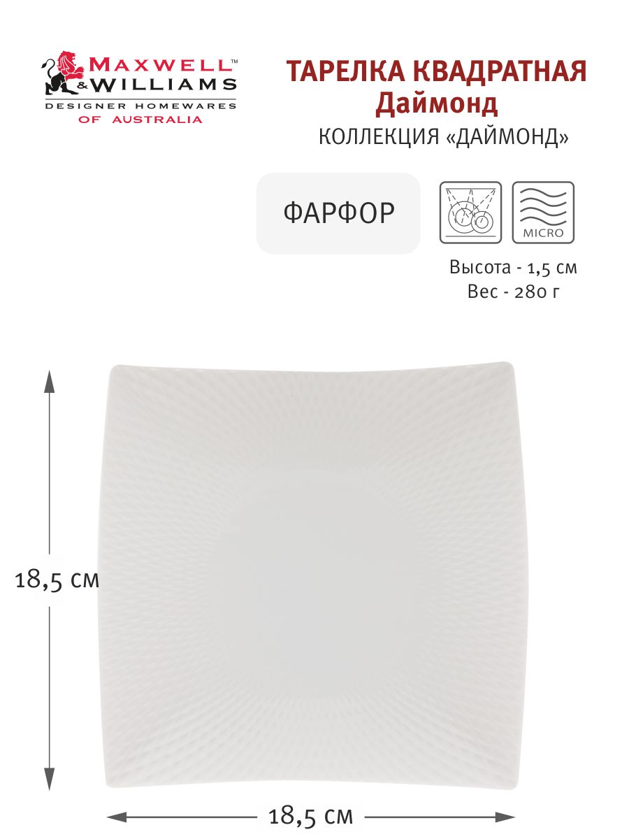 Тарелка даймонд квадратная, 18,5х18,5 см