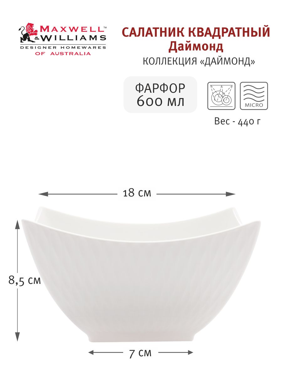 Салатник даймонд квадратный 16х16 см, 0,6 л