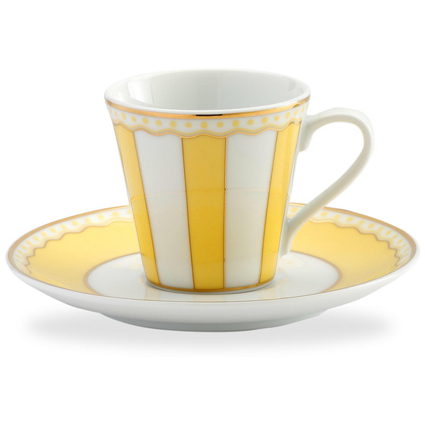 Чашка кофейная с блюдцем Noritake карнавал 90мл (жёлтая полоска), п/к