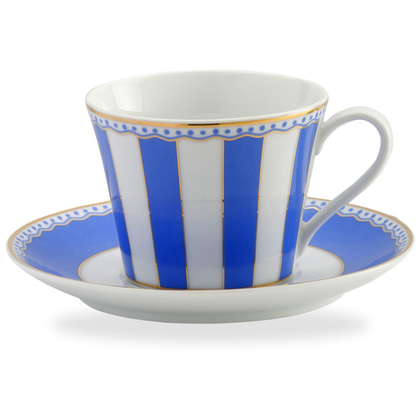 Чашка чайная с блюдцем 240мл карнавал (синяя полоска) п/к