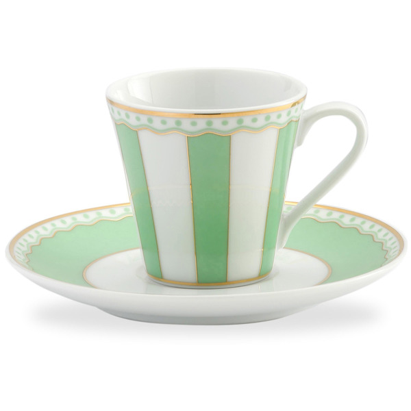 Чашка кофейная с блюдцем Noritake карнавал 90мл (зелёная полоска), п/к