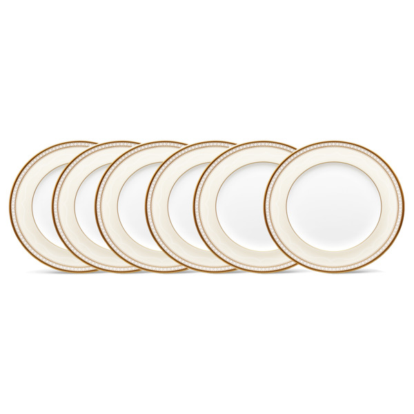 Набор из 6 тарелок закусочных noritake трефолио,золотой кант 22см. Материал: Фарфор костяной Бренд: Noritake Страна: Шри-ланка Серия: 4945 Трефолио,золотой кант