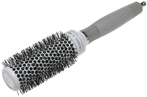Термобрашинг 35 мм ceramic + ion. Термобрашинг 35 мм с керамической поверхностью, обогащённой отрицательно заряженными ионами, с штифтами из термостойкого нейлона. Удобная прорезиненная ручка оснащена специальным хвостиком для разделения и выделения прядей. Сквозные отверстия в керамическом корпусе щётки продуваются горячим воздухом фена и обеспечивают быстрое высыхание волос и прочность завитка. Диаметр 35 мм.] Внимание! При использовании брашинга рекомендуется держать брашинг на расстоянии 15 см от фена. Страна происхождения: КОРЕЯ, НАРОДНО-ДЕМОКРАТИЧЕСКАЯ РЕСПУБЛИКА Артикул: OGBCI35 Бренд: OLIVIA GARDEN Материал втулки брашинга: Керамическое покрытие Диаметр брашинга: 31-40 мм Щетина брашинга: Нейлоновая