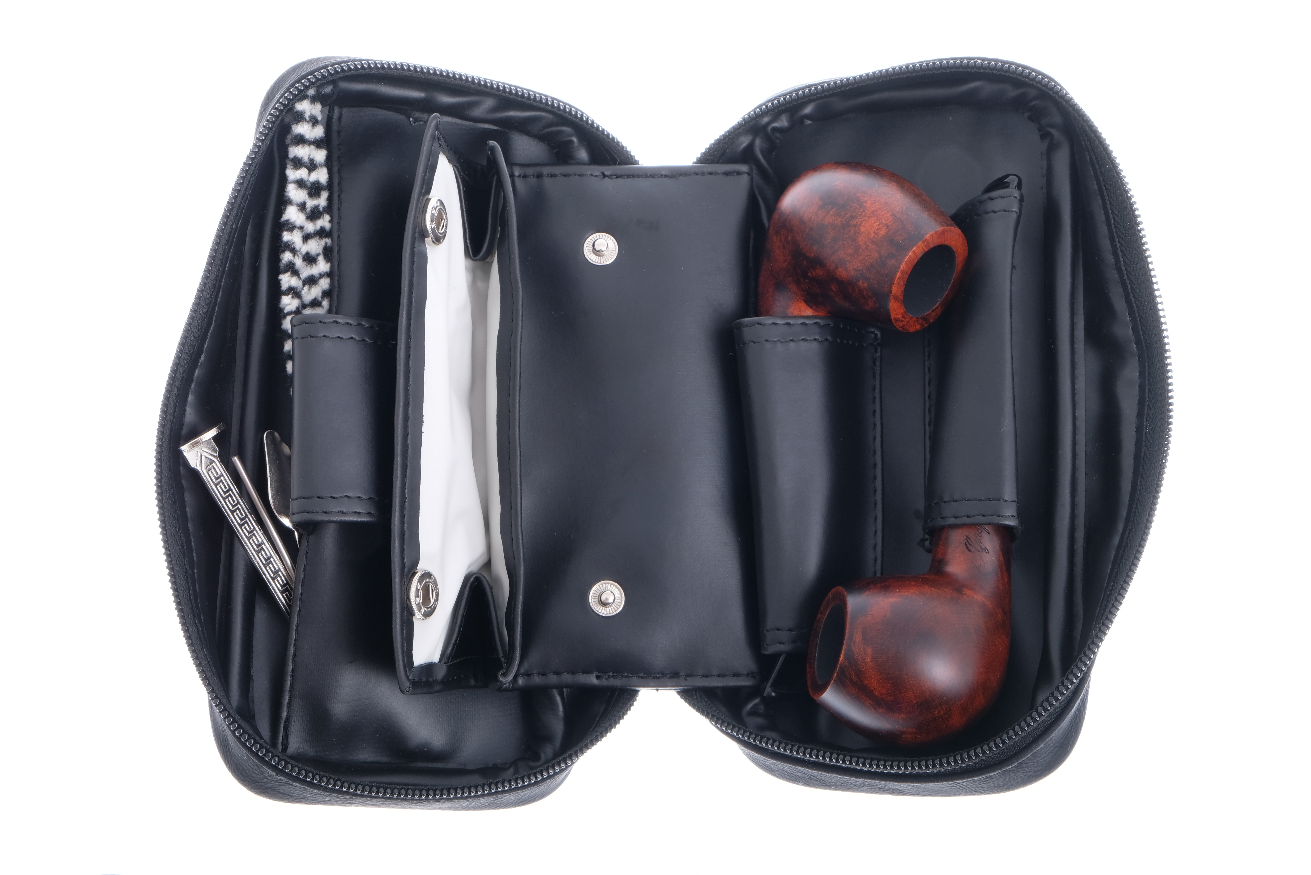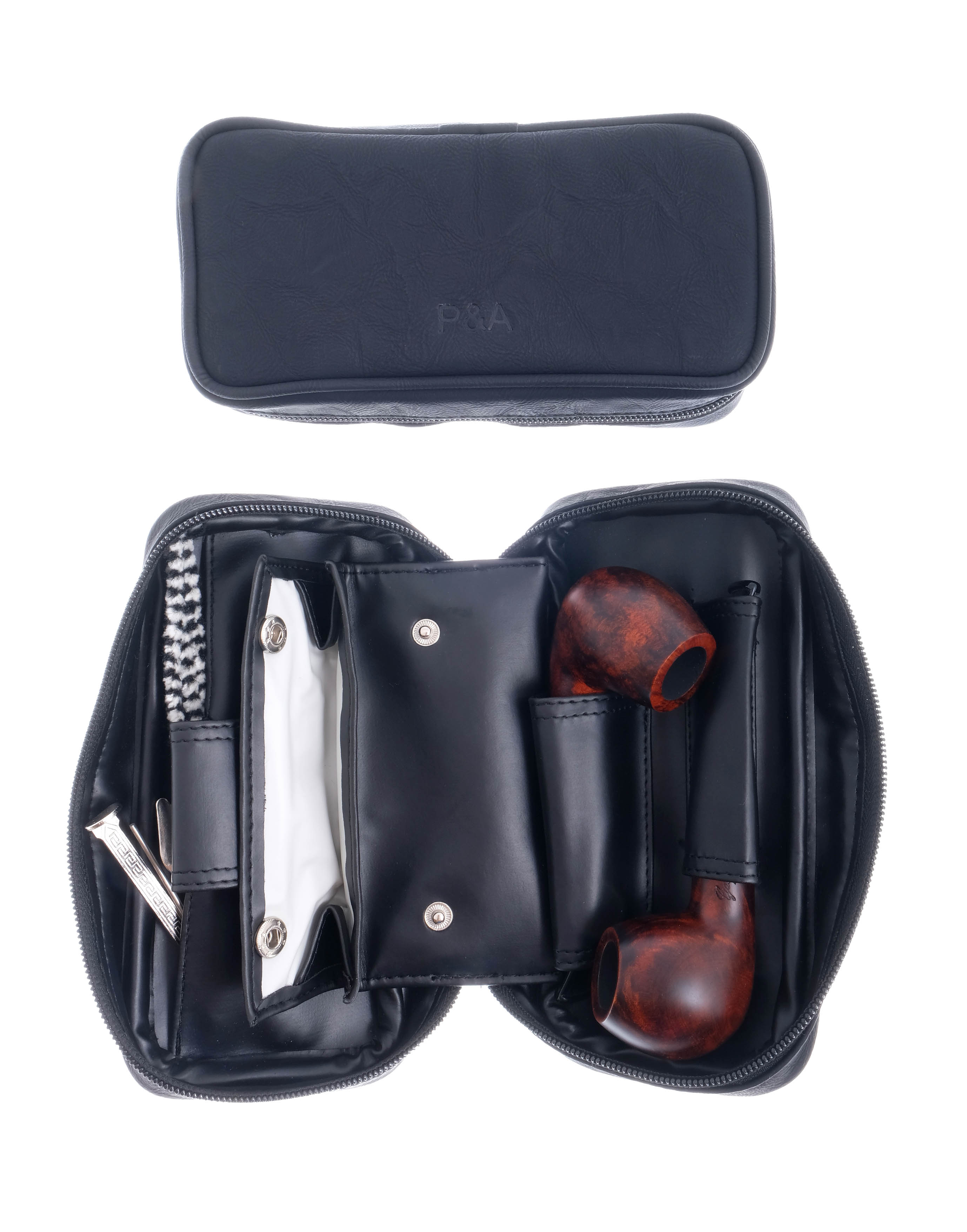 Сумка P&a для 2 трубок и табака, экокожа, черная