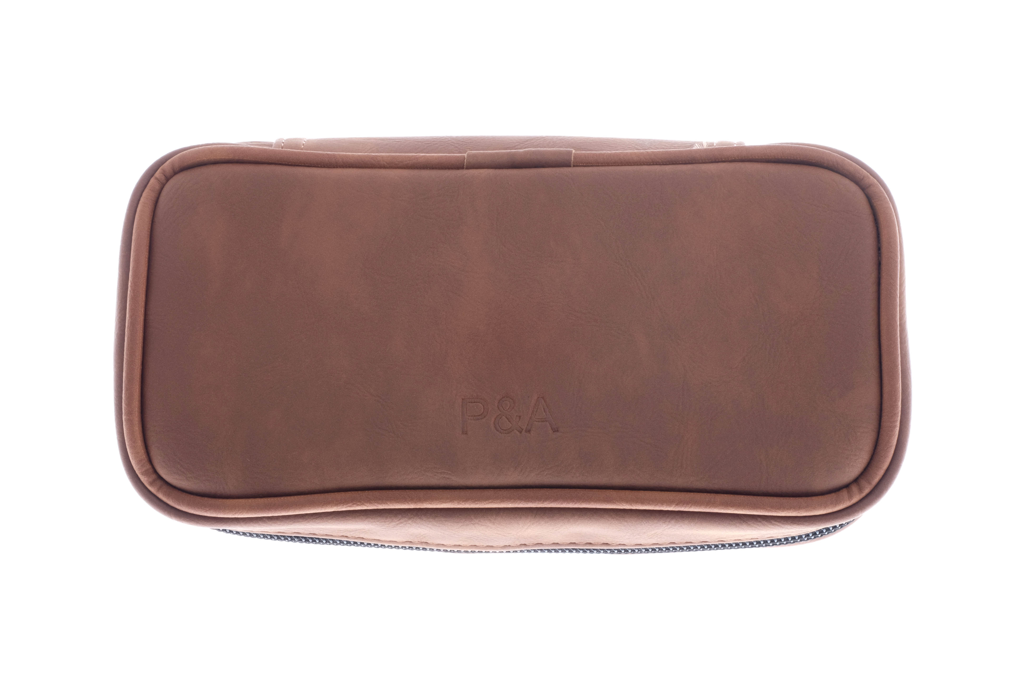 Сумка p&a для 2 трубок и табака, экокожа, коричневая. Вместительная сумка для двух трубок, табака и аксессуаров. Внутри есть съемный кисет для табака с резиновой вставкой для сохранения влажности. Эта серия недорогих, но качественных курительных аксессуаров производится в Индии по заказу и под контролем итальянской компании Parenti&Agostinelli из Милана. Материал Экокожа, каучук Производитель Parenti-Agostinelli, Италия