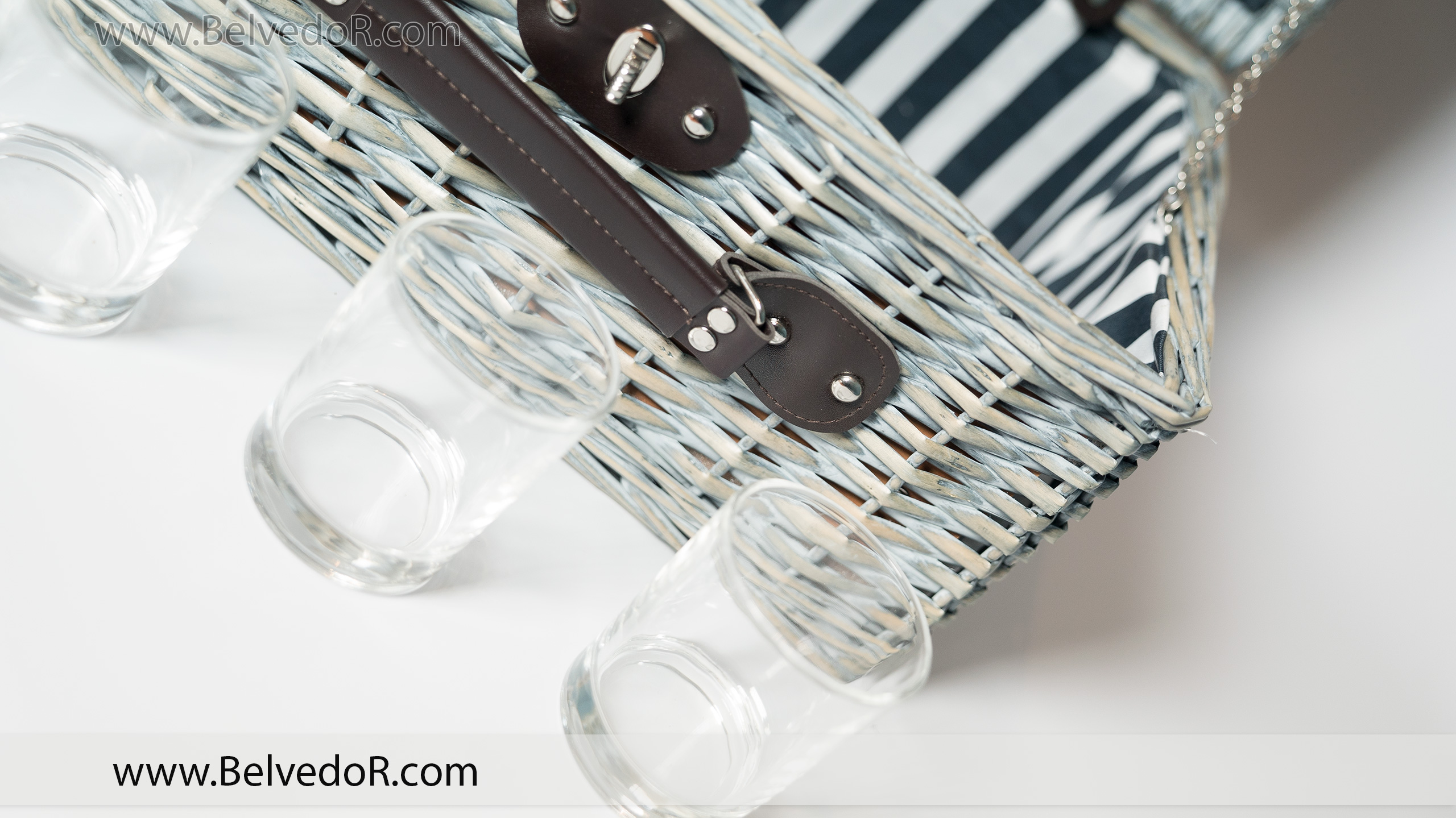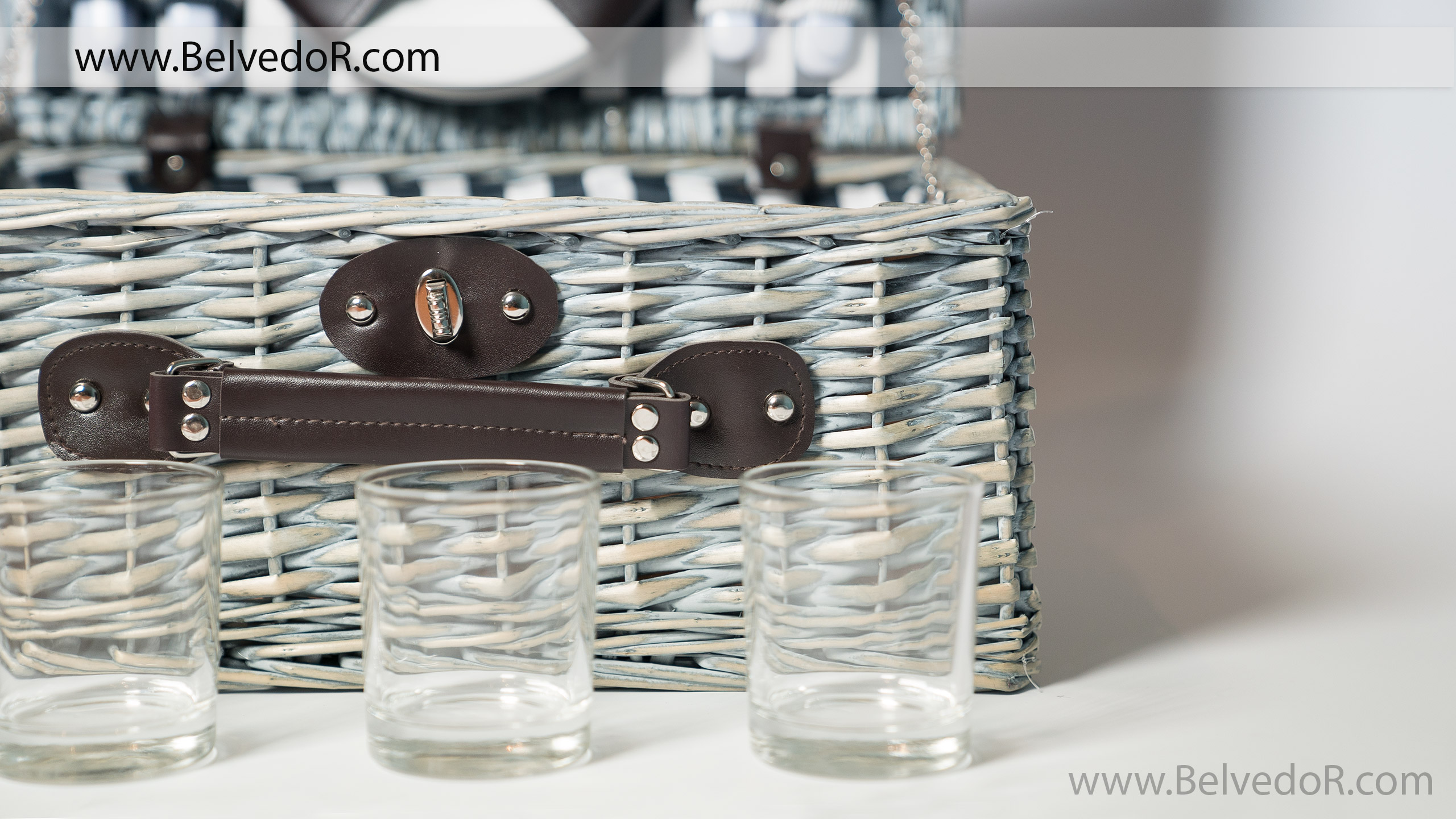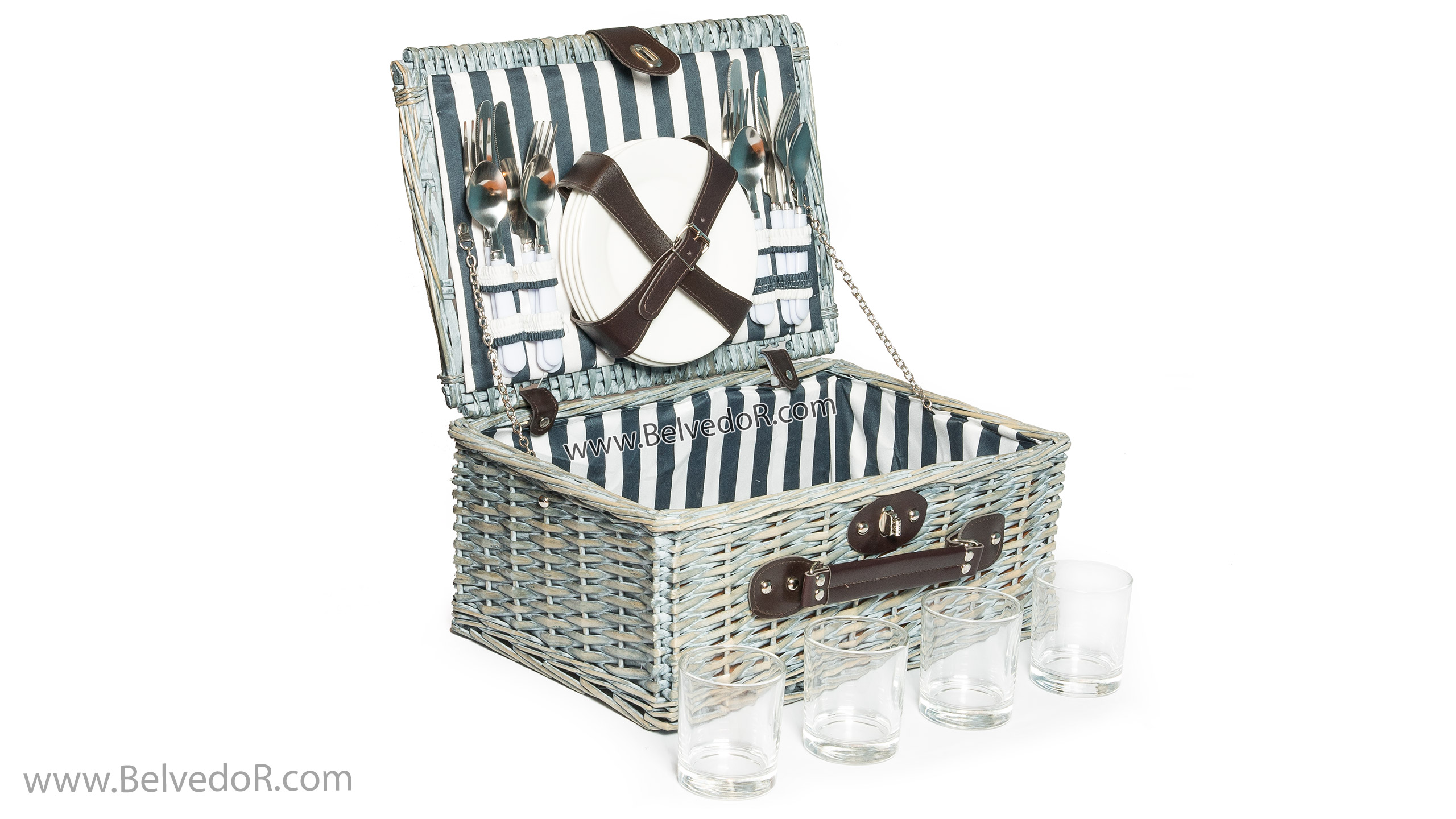 Набор для пикника на 4 персоны. Корзина: материал – лоза, размер 40*30*19 см. Что входит в набор: Стаканы – 4 шт., материал - прозрачное стекло, 200 мл. Тарелки – 4 шт., белое стекло ( d 17,5 см). Нож-4 шт.(21*2см), вилка-4 шт.(19,5*2,5см), ложка чайная-4 шт.(16*3,5 см), материал - сталь, пластик.