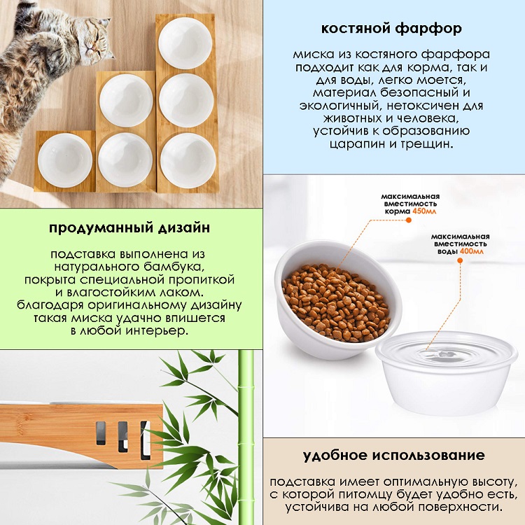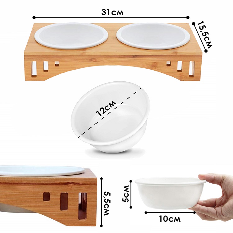 Двойная миска из костяного фарфора на деревянной подставке для животных, п. Страна бренда Россия Страна производства Китай Цвет древесный Размер 31х15,5х5,5 Материал дерево, фарфор Миска для животных двойная на подставке вместит корм и питье для вашего любимца, или корма для разных ваших животных. Миски выполнены из костяного фарфора, устойчивого к образованию царапин и трещин. Фарфоровые миски легко снимаются, что очень удобно. Можно мыть каждую миску отдельно по мере необходимости. Подходит для мытья в посудомоечной машине. Подставка выполнена из дерева, покрыта качественной пропиткой и влагостойким лаком. Подставка имеет оптимальную высоту, с которой вашему четвероногому другу будет удобно кушать. Подставка устойчива на любой поверхности. Благодаря оригинальному дизайну такая миска удачно впишется в любой интерьер. Бренд  развернуть описание ▼