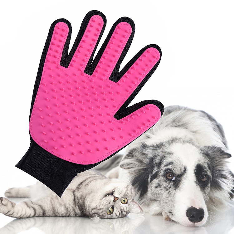 Перчатка для счесывания шерсти на правую руку, розовая, 14х15х2 см