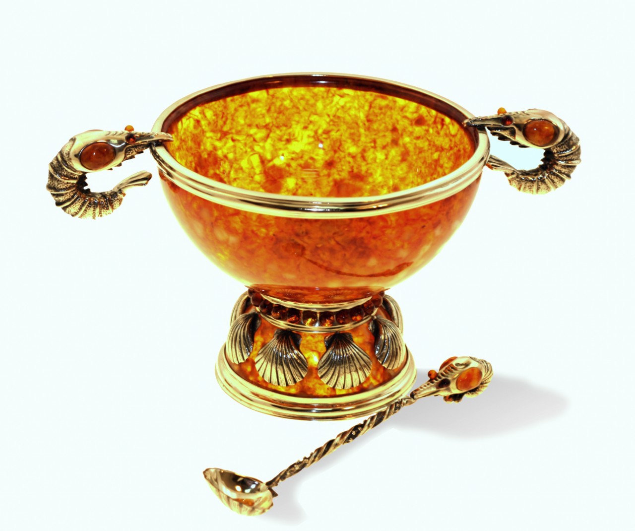 Салатница "креветки" из янтаря с ложкой