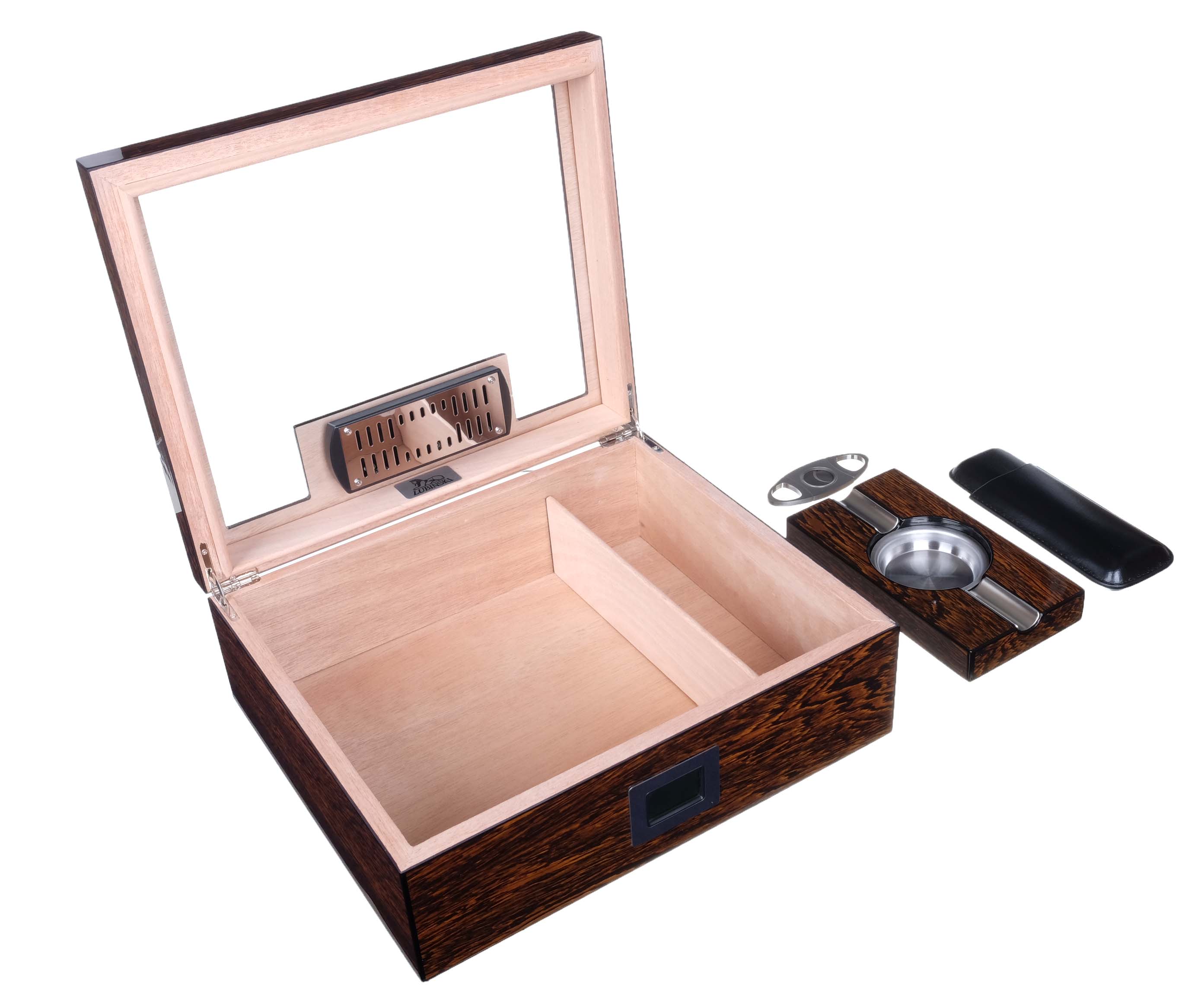 Хьюмидор lubinski на 60 сигар со стеклом и подарочным набором, железное де. Хьюмидор на 60 сигар в наборе с пепельницей, чехлом на 2 сигары и гильотиной от итальянской компании Lubinski. Внутренняя отделка выполнена из испанского кедра, в комплекте увлажнитель с акриловым полимером нового поколения, калибруемый электронный термогигрометр, инструкция по уходу. Подарочная коробка. Производитель оставляет за собой право без предварительного уведомления вносить незначительные изменения в конструкцию или комплектацию изделия с целью улучшения его свойств. Материал Железное дерево, кедр Производитель Lubinski, Италия Размер 32х27х12, 29x24x10, вес 2,7 кг