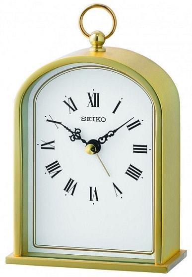 Настольные часы seiko qhe162gn. Настольные часы SEIKO QHE162GN Настольные часы с кварцевым механизмом, который отличается точностью, надежностью, не боится ударов и не требует подзавода. Корпус выполнен из качественного алюминия, золотого цвета. Циферблат белого цвета, часовая, минутная стрелки. Будильник. Временные рамки обозначены большими римскими цифрами. Питание от 1 батарейки типа АА (пальчиковая) - входит в комплект. Характеристики SEIKO QHE162GN Механизм: кварцевый Материал: металл Размер: 8х12,4х4,1 см Функции: Будильник Производитель: Япония Размер, см : 8х12,4х4,1 Цвет : Золото Материал : Металл Механизм : Кварцевый Функции : Будильник