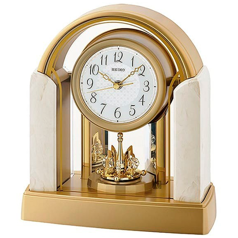 Настольные часы seiko qxn230gt. Настольные часы SEIKO QXN230GT Красивые настольные часы с вращающимся маятником (не влияет на ход часов). Оснащены надежным, долговечным кварцевым механизмом Питание от 2 пальчиковых батареек (тип АА - входят в комплект). Корпус выполнен из качественного золотистого пластика с белыми вставками. Временные рамки обозначены четкими, хорошо читаемыми арабскими цифрами. Циферблат закрыт стеклом. Характеристики SEIKO QXN230GT Механизм: кварцевый Материал: пластик Размер: 25х28,1х12,6 см Функции: вращающийся маятник Производитель: Япония Размер, см : 25х28,1х12,6 Цвет : Золото Материал : Пластик Механизм : Кварцевый Функции : Вращающийся маятник