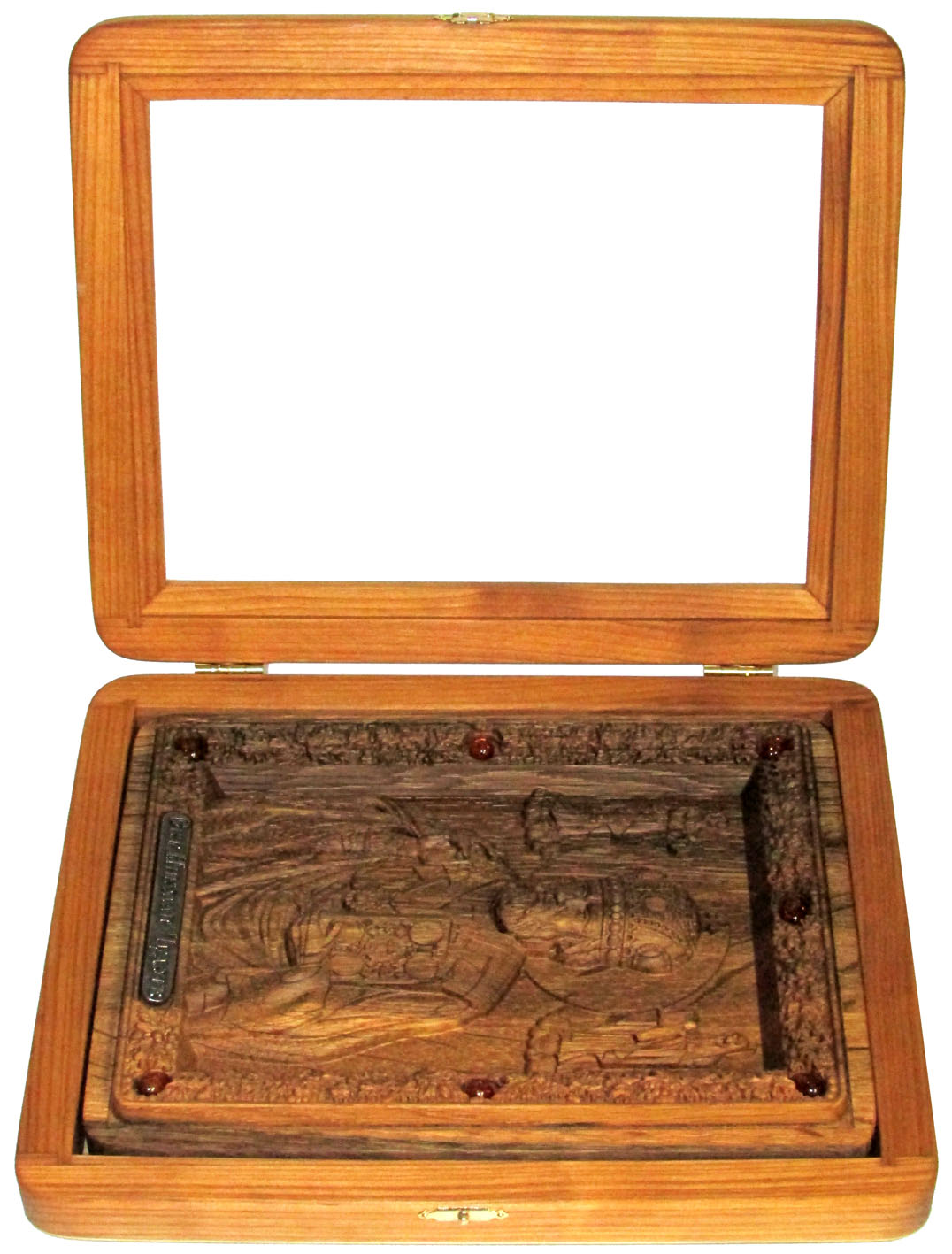Размер киота: 21,5х26,5х4 см. Киот выполнен из массива мореной березы и покрыт льняным маслом.