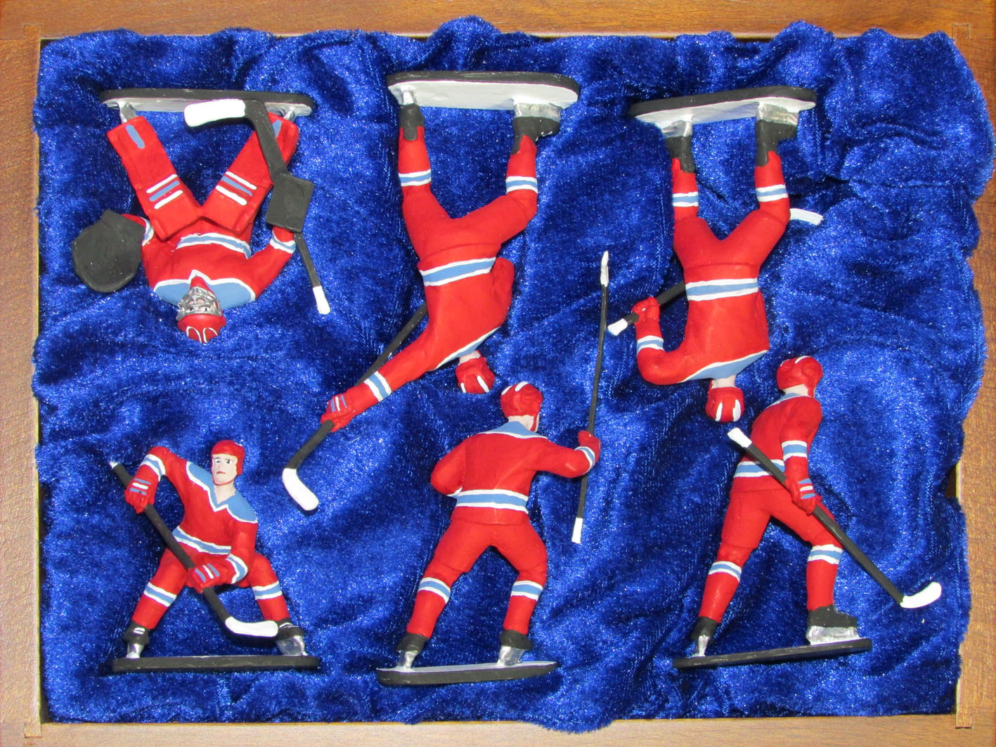 Наименование: Набор миниатюр в деревянной шкатулке ХОККЕЙ 6 фигур (красно-синяя форма)