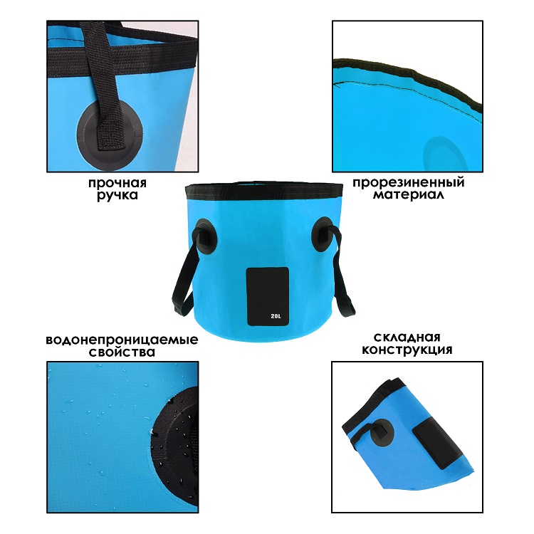 Складная сумка-ведро 20l, голубая, 30х12х1 см