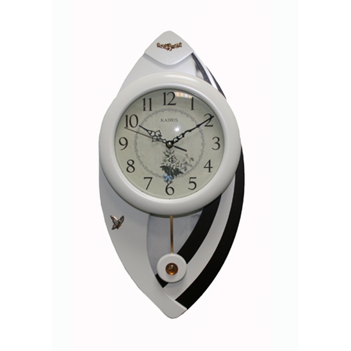 Настенные часы с маятником kairos rc009w. Настенные часы с маятником KAIROS RC009W Настенные часы с маятником KAIROS RC009W имеют надежный кварцевый механизм. Часы с белым арабским циферблатом, на котором изображены цветы. Механизм плавного хода. Циферблат закрыт стеклом. В экстерьере часов использованы декоративные металлические элементы. Характеристики часов KAIROS RC009W: Материал МДФ, дерево. Размер: 28х58х6 см Производство Южная Корея. Гарантия 1 год. Размер, см : 28х58х6 Цвет : Белый/Черный Материал : МДФ Механизм : Кварцевый Функции : Маятник