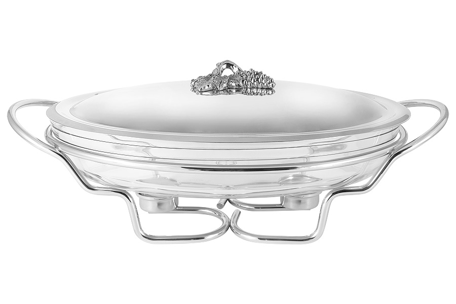 Блюдо с подогревом винтаж, 44х26 см. Мыть мягкими, неабразивными моющими средствами. Стекло можно мыть в посудомоечной машине. Металлическую часть после мытья вытирать насухо