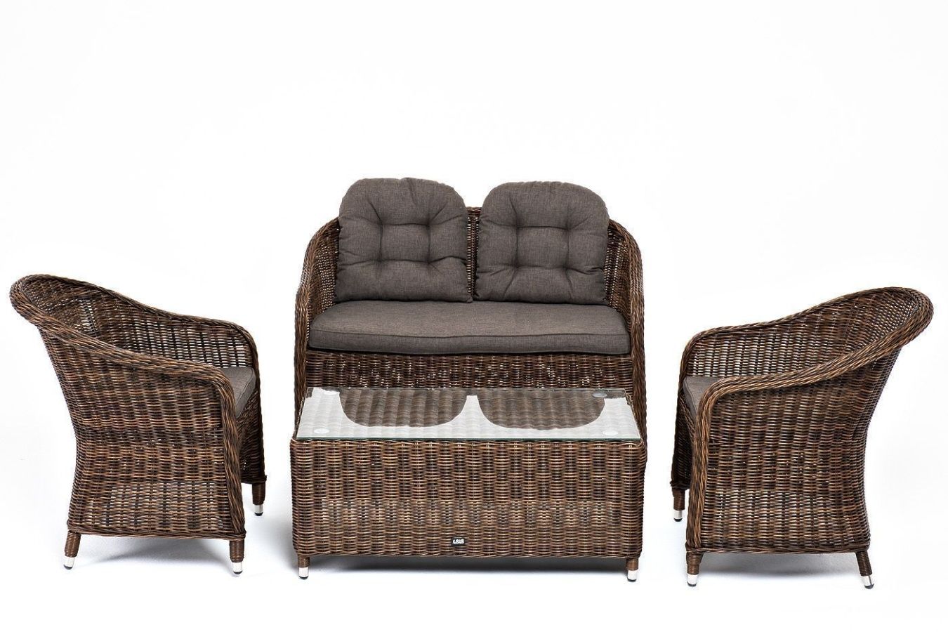 Равенна лаунж-зона из искусственного ротанга, цвет коричневый. Комплект для лаунж-зоны Равенна рассчитан на 4 персоны. В состав водят: - 2 кресла - 680x570x810 мм - журнальный столик - 1000x500x420 мм - двухместный диван - 1160x680x810 мм Комплект выполнен из круглого искусственного ротанга коричневого цвета. Каркас - из легкого и прочного алюминия. Подушки со съемными чехлами - из 100 #37; полиэстера, плотностью 230гр/м2 с влагоотталкивающей пропиткой. Вид ротанга круглый Цвет плетения коричневый Цвет подушки серый Материал каркаса (стул/кресло/диван) алюминий Материал плетения искусственный ротанг Материал подушки полиэстер 100% плотностью 230гр/м2 с влагоотталкивающей пропиткой Габариты упаковки (ДШВ) 100/100/100 Вес (Брутто) 76 Вес (Нетто) 46.5кг
