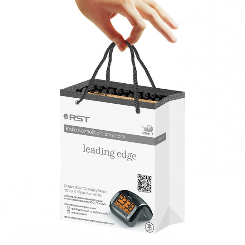 Радиоконтролируемые часы с будильником. Система RCC77.5 UTC/GMT для автоматической синхронизации и настройки точного времени и даты (год, месяц, число, день недели) по радио сигналам точного времени. Языки: русский, английский, французский, итальянский, немецкий. Автоматический перевод с зимнего на летнее время и обратно, система DST (для моделей реализуемых на территории Российской Федерации по умолчанию отключена, так как переход с зимнего на летнее время и обратно на территории РФ отменён, тем не менее данную функцию Пользователь может подключить в случае необходимости). Температура воздуха в помещении, тенденция изменения температуры. Память максимальных и минимальных зарегестрированных за 24 часа значений температуры. Мягкая контрастная оранжевая подстветка дисплея с функцией постепенного включения и выключения (crescendo). Элегантный текстурированный корпус с сенсорными кнопками. Система “intelligent alarm” (разумный будильник): “workday alarm” Вас разбудит только по рабочим дням недели и “single alarm” разбудит в указанное время один раз. Система snooze автоматический повтор сигнала будильника через 5 минут. Часы упакованы в подарочную упаковку - в оригинальную сумочку-пакет вложена дизайнерская коробка.