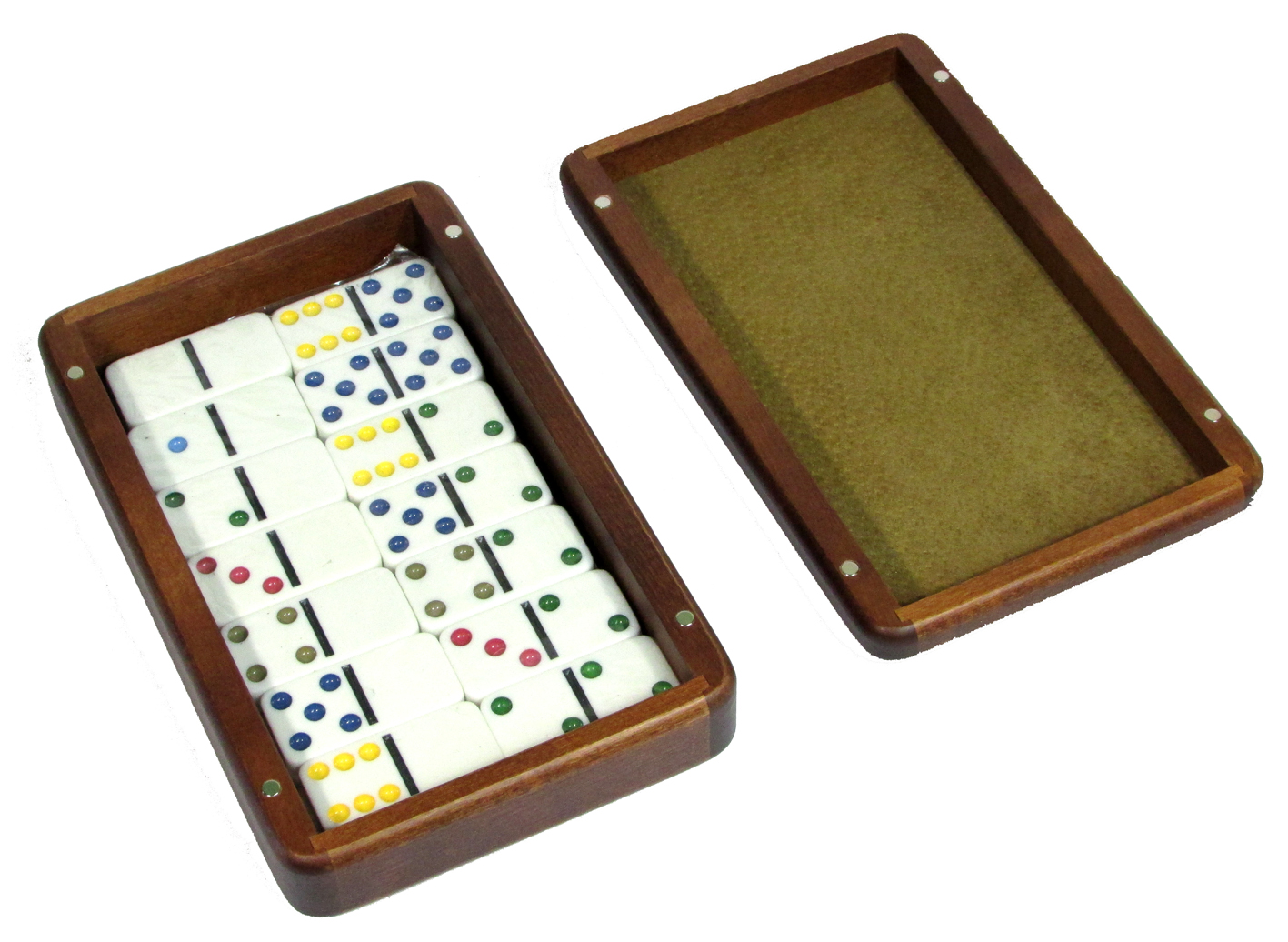 Домино d6 в деревянной шкатулке с замшей. Артикул: RT-25C Наименование: Домино D6 в деревянной шкатулке с замшей Размер: 20,5 x 13 х 5 см Описание: Материал: Береза Технология: Тонирование и полировка Комплект из 28 костей для игры в домино с цветными точками в полированной шкатулке из массива березы, тонированной под красное дерево. Внутренняя полость шкатулки покрыта замшей горчичного цвета, обеспечивающей высочайшую износостойкость.Кости выполнены из ударопрочного пластика белого цвета. Размер каждой кости 50,8х25,4х8 мм. Крышка шкатулки не имеет постоянного крепления на основании и в закрытом состоянии удерживается четырьмя парами магнитов. Это позволяет высыпать кости на игровой стол просто отделив крышку от основания. В ходе игры вдвоем верхняя и нижняя половины шкатулки могут выступать отдельными приспособлениями для поддерживания в тайне друг от друга костей игроков. Упаковка: транспортная картонная коробка. Может служить небольшим корпоративным подарком. Очень легко персонализируется лазерной гравировкой.