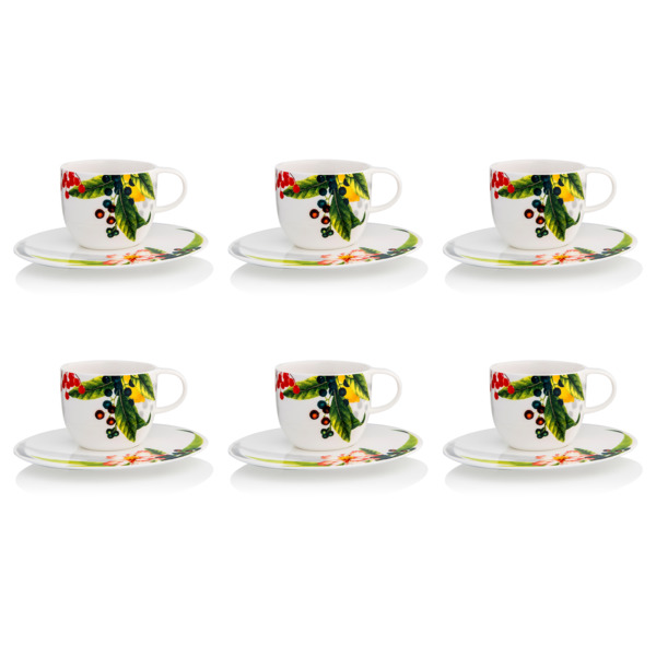 Набор чашек кофейных с блюдцем 200мл фруктовый сад, 6 шт