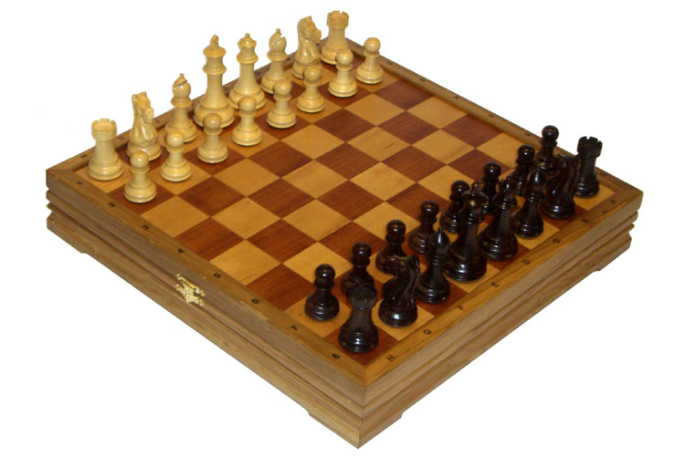 Шахматы классические средние деревянные утяжеленные 37х37см. Артикул: [RTC-5502] Наименование: Шахматы классические средние деревянные утяжеленные (высота короля 3,25) Размер: 37 x 37 cm Описание: Материал: Дуб Технология: Маркетри Это один из самых классических наборов шахматных фигур в нашем ассортименте. Его характеристики полностью соответствуют запросам любителей этой древней игры: - Фигуры выточены вручную: светлые из самшита, а темные из драгоценного палисандра. Высота короля - 3,25 дюйма (около 8,2 см). В основании каждой фигуры установлен утяжелитель, благодаря чему фигура увесиста и приятно лежит в руке игрока.- Доска выполнена из массива дуба. Размер доски 37*37 см- Поле набрано из попеременно расположенных квадратиков шпона березы (белые клетки) и красного дерева (темные клетки). Набор каждого поля осуществляется вручную. Размер клетки поля 38,5*38,5 мм.- По краю поля нанесены буквенная и цифровая индексация ячеек.- Внутри доски есть отделения для каждой фигуры. Решетка выполнена из дуба, в результате чего фигуры не деформируются. Каждый комплект поставляется в транспортной картонной коробке. Данный комплект может быть дополнен фишками для игры в шашки. Диаметр фишек 29 мм. Для этого в доске предусмотрено специальное отделение. В этом случае артикул набора меняется на RTC-5502.A.