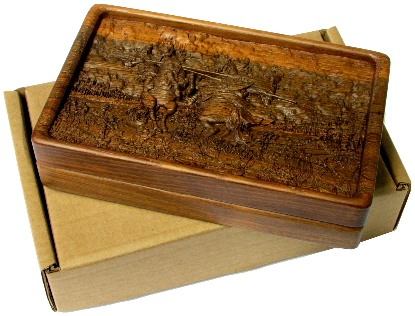 Домино d6 в резной дубовой шкатулке "поединок пересвета с челубеем на. Артикул: [RTD-301.M] Наименование: Домино D6 в резной дубовой шкатулке Поединок Пересвета с Челубеем на Куликовом поле Размер: 203 x 122 х 48 мм Описание: Материал: Мореный дуб Технология: Резьба по массиву Комплект из 28 костей для игры в домино с разноцветными точками в резной шкатулке из массива мореного дуба. Обе части шкатулки изготавливаются методом выборки материала из массивной дубовой доски. Таким образом, шкатулка выполнена из дуба на 100 процентов, - в отличие от большинства аналогов, даже дно в ней из массива драгоценного дуба. Лицевая поверхность украшена резной картиной Михаила Ивановича Авилова Поединок Пересвета с Челубеем на Куликовом поле. Внутренняя полость шкатулки покрыта мягкой замшей горчичного цвета.Кости выполнены из белого ударопрочного пластика. Размер каждой кости 51х25,4х8 мм. Упаковка: транспортная картонная коробка. Может служить небольшим корпоративным подарком. Шкатулка позволяет хранить купюры практически любой валюты, а также может использоваться как упаковка для подавляющего большинства смартфонов. Аналогичная шкатулка выпускается без игрового наполнения как шкатулка для ювелирных украшений.
