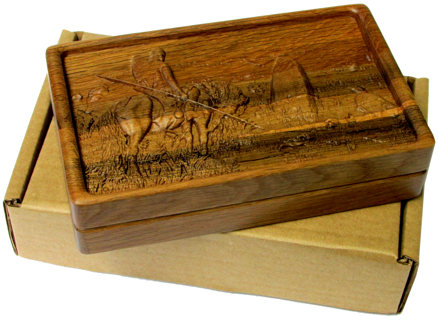 Домино d6 в резной дубовой шкатулке "витязь на распутье". Артикул: [RTD-307.M] Наименование: Домино D6 в резной дубовой шкатулке Витязь на распутье Размер: 203 x 122 х 48 мм Описание: Материал: Мореный дуб Технология: Резьба по массиву Комплект из 28 костей для игры в домино с разноцветными точками в резной шкатулке из массива мореного дуба. Обе части шкатулки изготавливаются методом выборки материала из массивной дубовой доски. Таким образом, шкатулка выполнена из дуба на 100 процентов, - в отличие от большинства аналогов, даже дно в ней из массива драгоценного дуба. Лицевая поверхность украшена резной картиной Виктора Михайловича Васнецова Витязь на распутье. Внутренняя полость шкатулки покрыта мягкой замшей горчичного цвета.Кости выполнены из белого ударопрочного пластика. Размер каждой кости 51х25,4х8 мм. Упаковка: транспортная картонная коробка. Может служить небольшим корпоративным подарком. Шкатулка позволяет хранить купюры практически любой валюты, а также может использоваться как упаковка для подавляющего большинства смартфонов. Аналогичная шкатулка выпускается без игрового наполнения как шкатулка для ювелирных украшений.