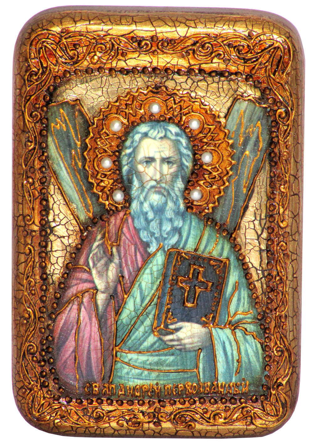 Настольная икона "святой апостол андрей первозванный" на мореном.
