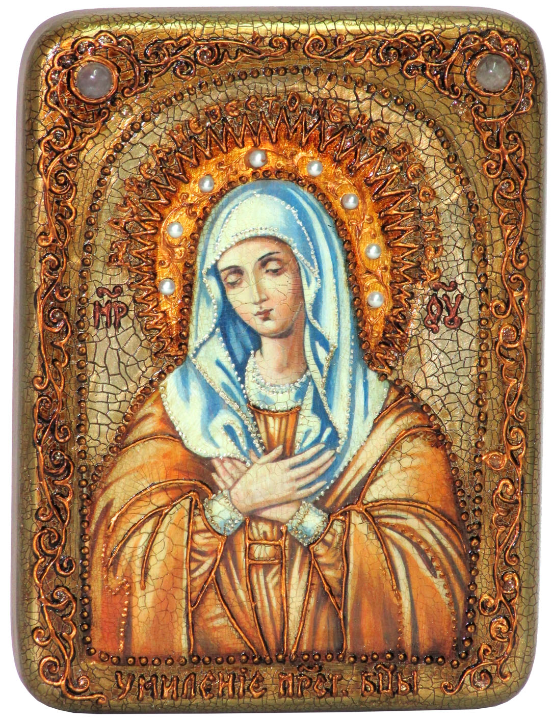 Подарочная икона божией матери "умиление серафимо-дивеевская" на. Икона Божией Матери Умиление. Икона Божией Матери Умиление Серафимо-Дивеевская принадлежала преподобному Серафиму Саровскому, была его келейной иконой. Елеем от лампады, горевшей перед этой святой иконой, Преподобный помазывал больных, которые получали после помазания исцеление. Подвижник называл икону Умиление - Всех радостей Радость, и перед ней он скончался на молитве 2 января 1833 года. После смерти преподобного Серафима Саровский настоятель о. Нифонт отдал святую икону Всех радостей Радость сестрам Дивеевской Серафимовской обители. Богоматерь на этой иконе изображена в полурост, с крестообразно сложенными на груди руками, без Богомладенца, в момент произнесения Ею слов Архангелу Гавриилу при Благовещении: Се раба Господня, буди ми по глаголу твоему. Икона написана на натуральной деревянной доске, изготовленной из массива мореного дуба. К каждой иконе прилагается номерное свидетельство с полной информацией о ней. Размер иконы: 15х20см - полуаналойный. Артикул: RTI-222.m Икона - лучший подарок, потому что, даря икону, мы выражаем человеку высшую степень христианской любви – пожелание спасения души.