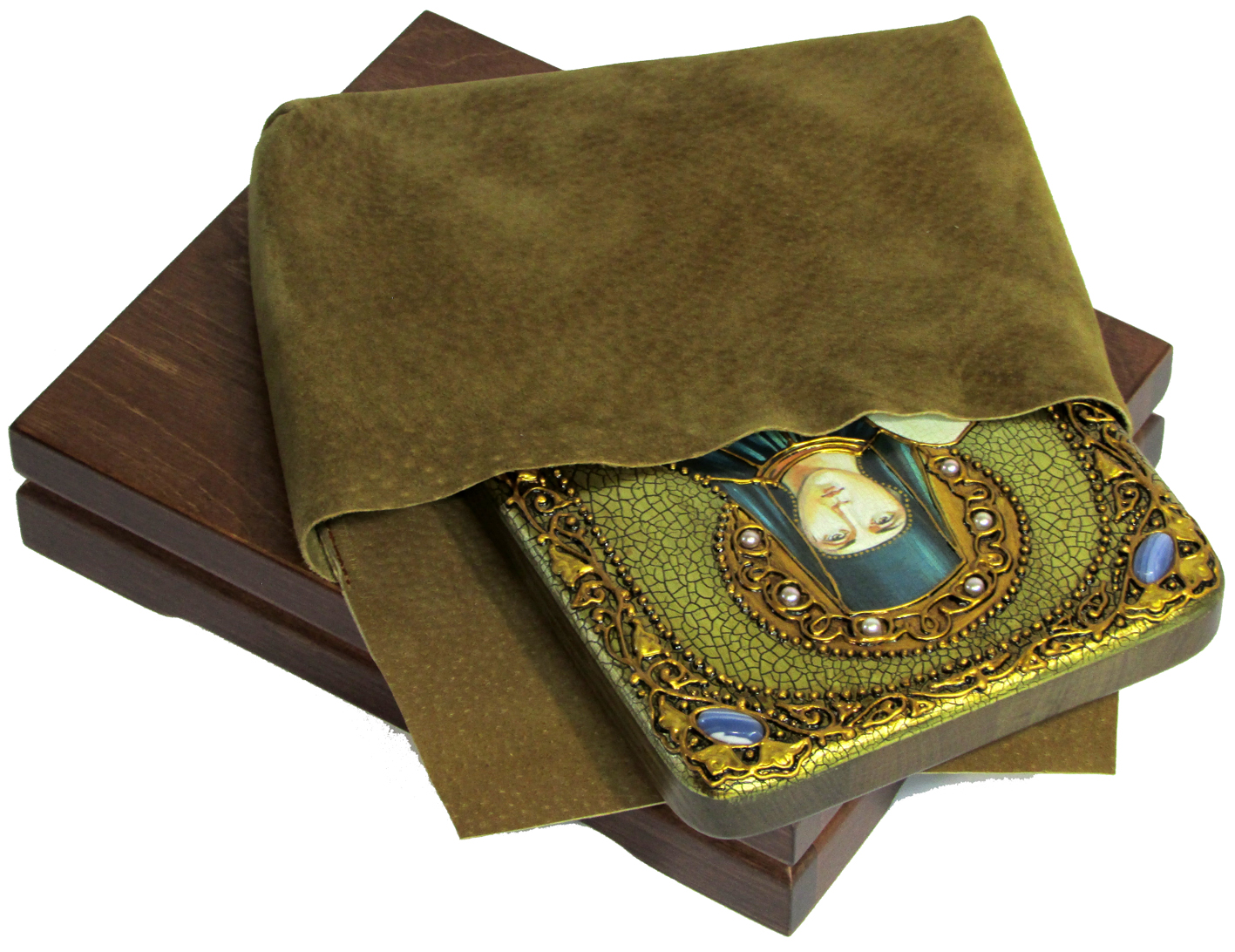 К каждой иконе прилагается номерное свидетельство с полной информацией о ней. Каждая икона поставляется в подарочной шкатулке.