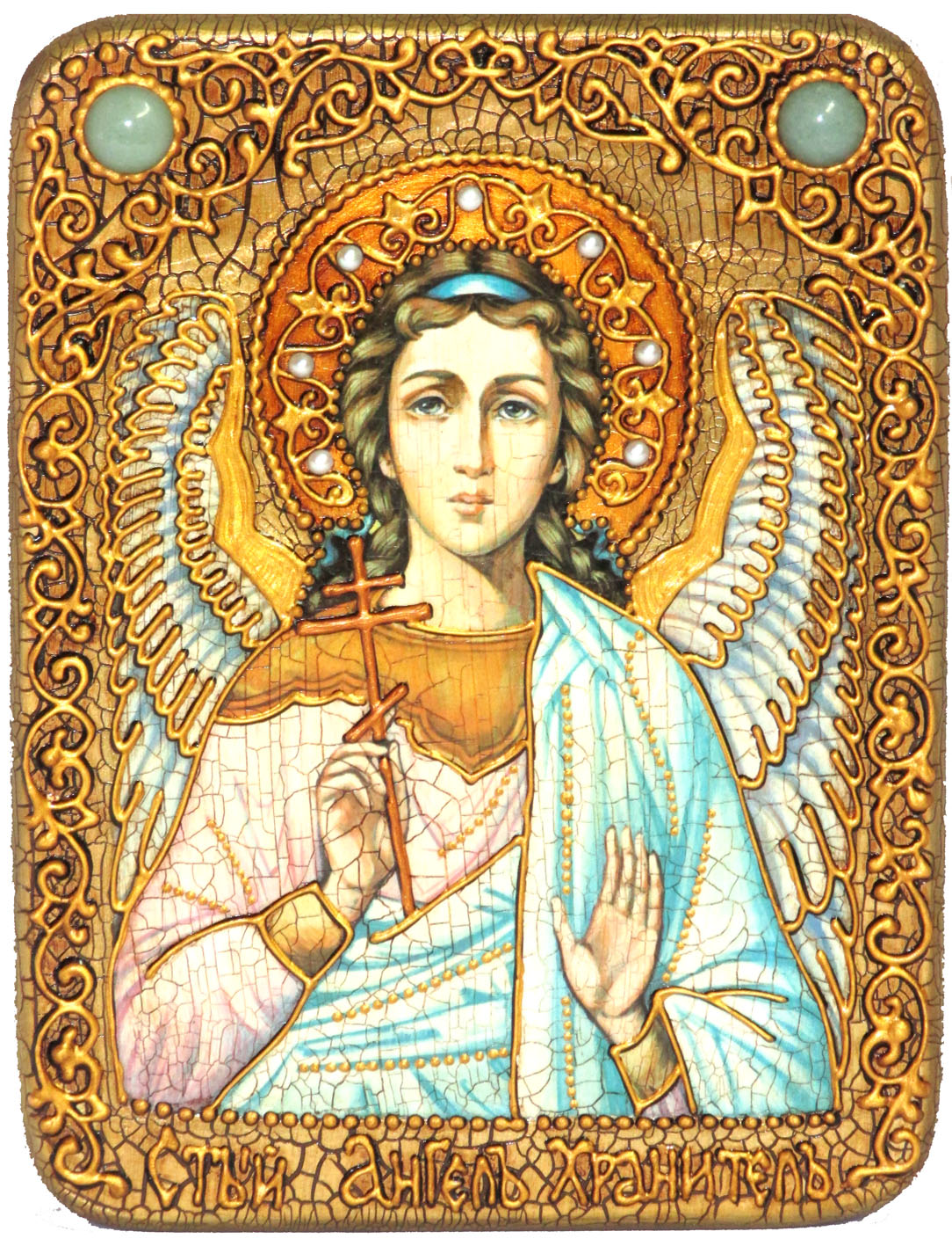 Подарочная икона "ангел хранитель" на мореном дубе. Образ Ангела - хранителя После крещения по традиции над кроваткой младенца появляется образ Ангела-хранителя. Ангел-хранитель невидимо находится при человеке на протяжении всей его жизни, его задача — способствовать спасению души подопечного. Ангелы-хранители наставляют христиан в вере и благочестии, охраняют их души и тела, заступаются за них в течение земной их жизни, молят о них Бога, наконец, после смерти и отводят их души в вечность. Согласно учению Православной Церкви, личного имени конкретного ангела-хранителя человек знать не может, так как ангел дан человеку Богом и невидим для человека. Поэтому образ Ангела-хранителя является универсальным подарком на все случаи жизни христианина: день рождения, день крещения (крестины), День ангела (именины), юбилей, Рождество, Пасха и т. д. Размер иконы: 15х20см - полу-аналойный. Артикул: RTI-390.m Икона - лучший подарок, потому что, даря икону, мы выражаем человеку высшую степень христианской любви – пожелание спасения души.