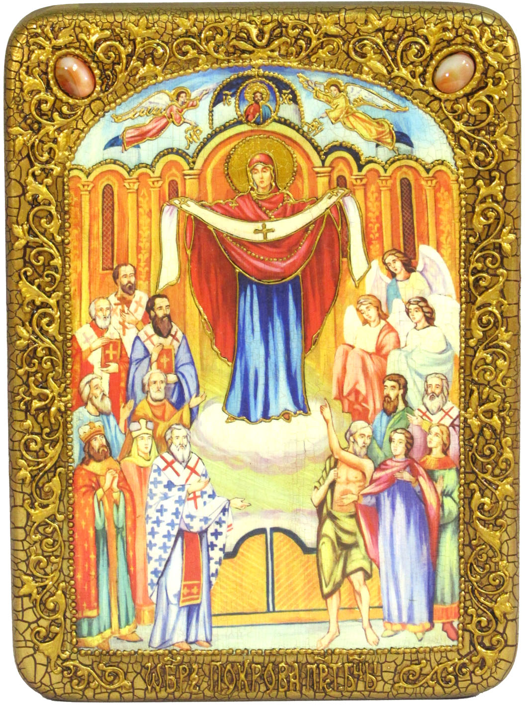 Подарочная икона "образ божией матери "покров" на мореном д.